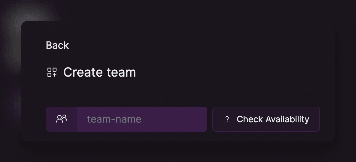 To create a new team, click on your email address on the top left, and select "Create Team".